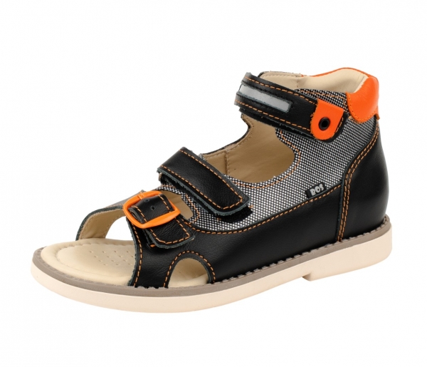 Сандалии для профилактики плоскостопия и плосковальгусной установки стоп. Широкий, устойчивый каблук специальной конфигурации - каблук Томаса. Каблук продлен с внутренней стороны до середины стопы, чтобы исключить заваливание стопы вовнутрь, так называемая косолапость, или вальгусная деформация. Анатомическая стелька с супинатором для правильного формирования свода стопы. Задник максимальной жесткости с удлиненным крылом надежно стабилизирует голеностопный сустав во время ходьбы. Упругая, умеренно-эластичная подошва, имеющая перекат, позволяет повторить естественное движение стопы при ходьбе для правильного распределения нагрузки на опорно-двигательный аппарат ребенка.